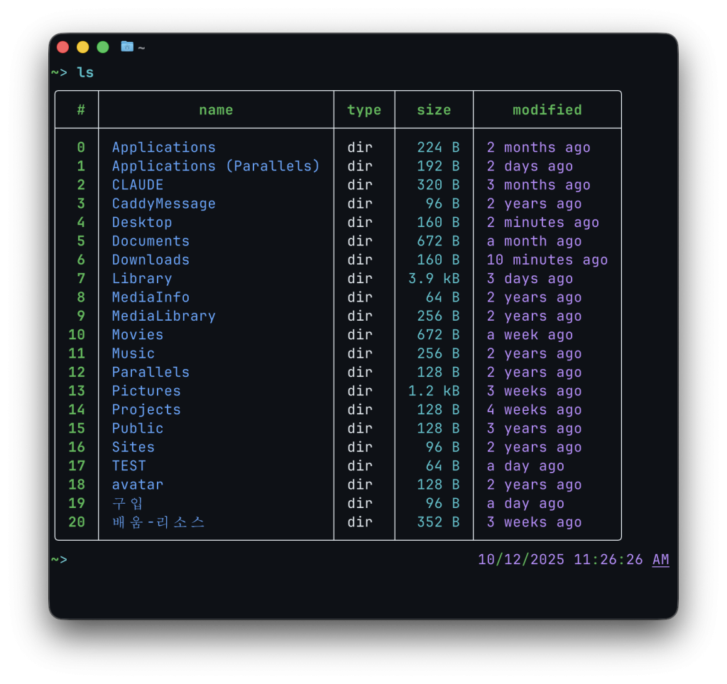 정보를 표로 딱딱 정리해서 보여주는 쉘