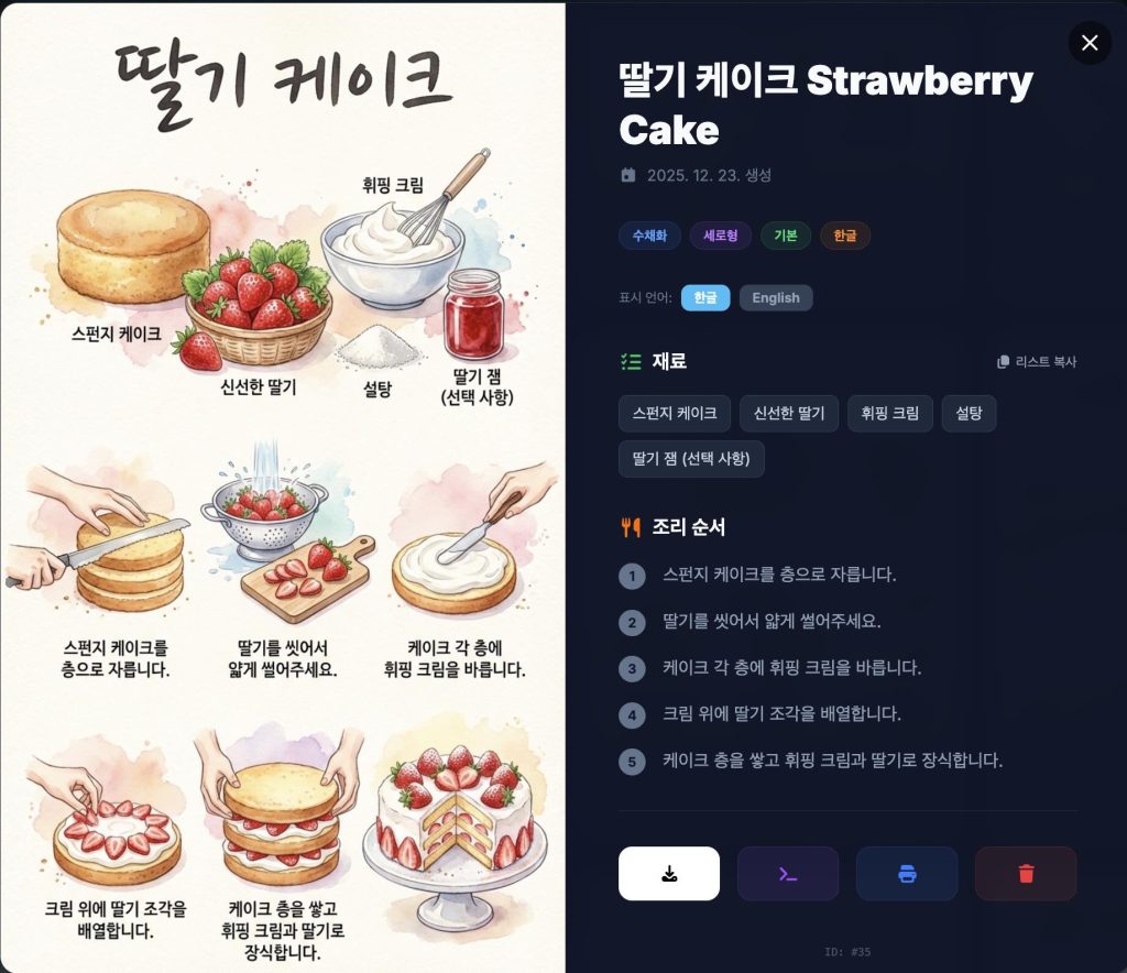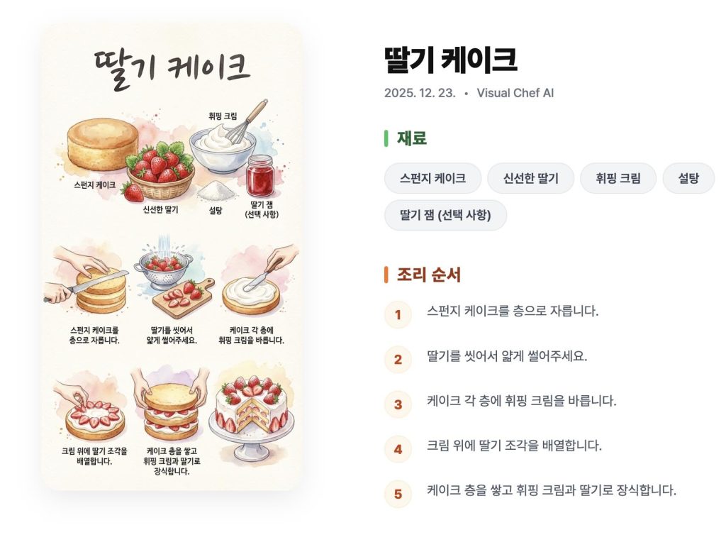 지금 바로 당신의 첫 번째 비주얼 레시피를 무료로 생성해 보세요!